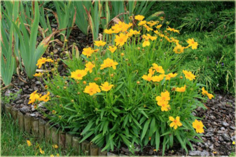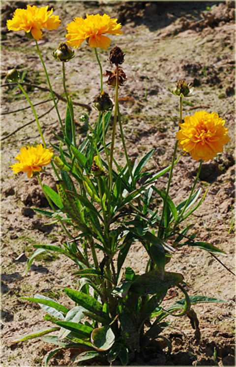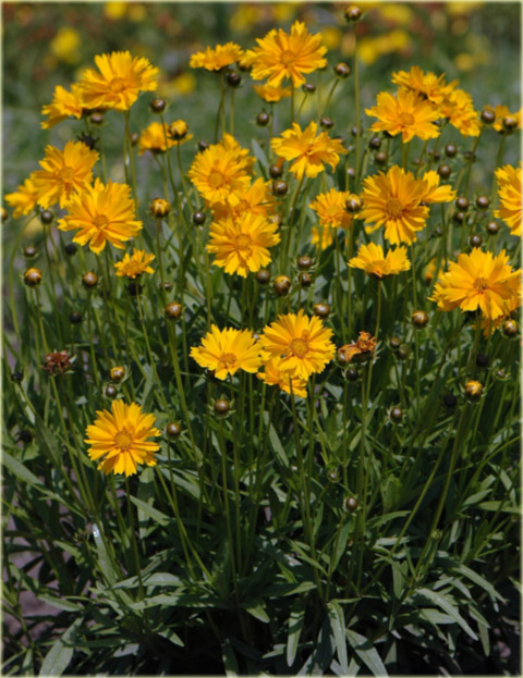 Nachyłek Wielkokwiatowy Solena Compact Coreopsis Grandiflora to wieloletnia ozdobna bylina. Ta odmiana nachyłka charakteryzuje się płasko-kulistą, bardzo zwartą budową. Roślina osiąga wysokość około 35cm. Solena Compact ma duże, pełne kwiaty koloru złoto-żółtego pojawiające się przez całe lato, od czerwca aż do września.