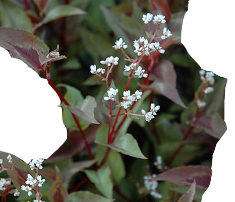 Rdest Chocolate Dragon Persicaria microcephala to wieloletnia ozdobna bylina z rodziny rdestowatych. Dorasta do 60cm. Ma niezwykle ozdobne czekoladowo-purpurowe liście, podkreślone srebrnym wzorem w środku. Intensywność wybarwienia koloru liści nasila się w słońcu. Na stanowiskach nieco bardziej ocienionych, kolor nie będzie tak intensywny. Kwitnie długo - od lipca do września. Kwiaty w kolorze białym, zebrane we wzniesione kłosy - pięknie kontrastują z czekoladowymi liśćmi. Rdest Chocolate Dragon rozrasta się w kępę. Bardzo dobrze wygląda na rabatach, skalniakach, w grupach a także w pobliżu oczka wodnego. Można go również sadzić w pojemnikach.