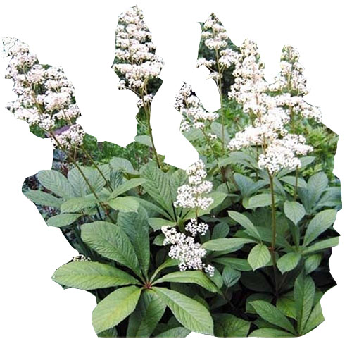 Rodgersja kasztanolistna Rodgersia acutifolia to wieloletnia ozdobna bylina z rodziny skalnicowatych (Saxifragaceae). Jest to okazała, wysoka bylina o dużych, ozdobnych, palczastych liściach - podobnych do liści kasztanowca. Średnica pojedynczego liścia sięga 50cm! Szczególnie okazale prezentuje się od czerwca do sierpnia kiedy to ponad liśćmi ukazują się wiechy, biało-kremowych kwiatów. Rodgersja kasztanolistna dorasta do 100cm. Optymalnym rozwiązaniem jest posadzenie rodgresji tak, aby miała słońce do godziny 11-tej, a później cień. Roślina lubi też stanowiska osłonięte od wiatru. Rodgersja kasztanolistna bardzo dobrze wygląda na wysokich rabatach, z uwagi na wyraźną strukturę liści, odmienną od pozostałych roślin.