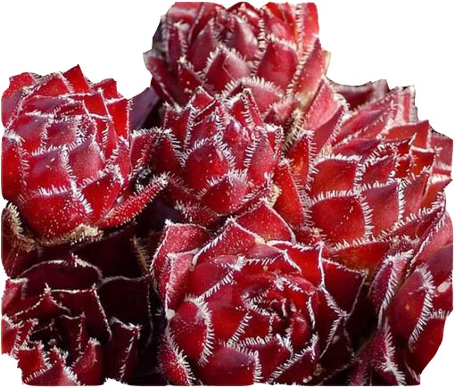 Rojnik czerwony Sempervivum Rubin z rodziny Crassulaceae jest niską wieloletnią zadarniającą byliną. Odmiana ta została wyhodowana sztucznie. Rojnik czerwony posiada bardzo charakterystyczne żywo czerwone rozety o średnicy do 5 cm. Liście są bardzo zwarte, mięsiste. Kwitnie od lipca do sierpnia brudnoróżowymi kwiatami zebranymi w baldachogrona. Jest bardzo łatwy w uprawie. Toleruje bardzo suchą i uboga glebę. Nie potrzebuje dużo miejsca. Lubi słoneczne stanowiska. Rojnik czerwony idealnie nadaje się do ogrodów skalnych. Wykorzystywany jest do zapełniania szczelin w murach. Można go posadzić na obrzeżach rabat i grobach.