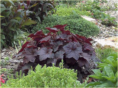 Heuchera americana Palace Purple to jedna z najpiękniejszych odmian żurawki amerykańskiej. Nazywana przez niektórych królową wśród żurawek. Przepiękna, zimozielona bylina o wyjątkowych walorach dekoracyjnych. Odmiana Palace Purple zachwyca otoczenie swoimi fantastycznie ubarwionymi i błyszczącymi w świetle promieni słonecznych liśćmi. Intensywne odcienie czerwieni, purpury, brązu i wiśni tworzą genialną kompozycję na tle ogrodowej zieleni.