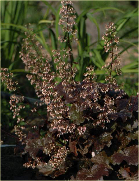 W okresie kwitnienia żurawka amerykańska Palace Purple tworzy długie wiechowate kwiatostany kremowych, drobnych kwiatów. Każdy powiew wiatru sprawia, że kwitnąca żurawka sprawia wrażenie drżącego i szumiącego morza o czarującej woni. Żurawka posadzona na obrzeżach rabat lub skalniakach z pewnością zachwyci otoczenie oryginalnym i niebanalnym wyglądem.