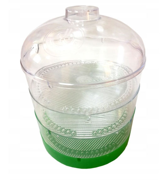 Kiełkownica PNOS to naczynie do kiełkowania nasion w rozmiarze XL, wykonane z wysokiej jakości tworzywa. Jego przeźroczystość gwarantuje równomierne dopuszczenie do wszystkich nasion światła, które jest niezbędne do prawidłowego kiełkowania nasion. Szalki kiełkownicy mają specjalne wgłębienia oraz mikro otworki, dzięki którym odprowadzany jest nadmiar wody – dzięki temu nasiona nie będą pleśnieć.