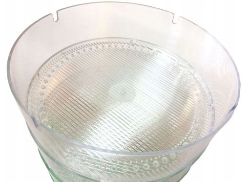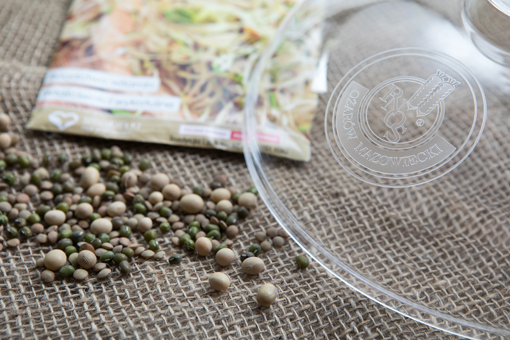 Wypukła pokrywa zapobiega podnoszeniu jej przez wyrastające kiełki, a zbiornik na wodę magazynuje jej nadmiar. Kiełkownica jest bardzo stabilna dzięki zastosowaniu przetłoczenia pod zbiorniczkiem.