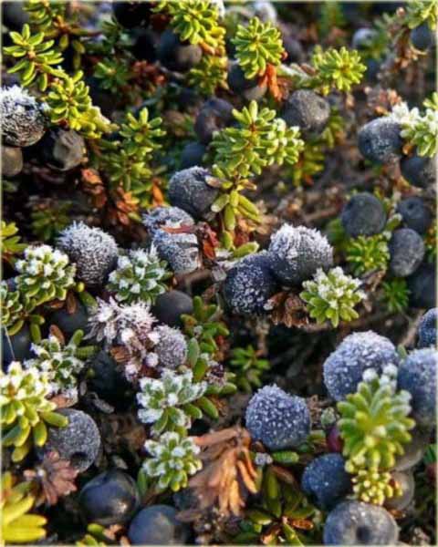 Owoce Bażyny Czarnej to kuliste, czarne jagody o średnicy do 5mm. Są niesłodkie i jadalne (niektóre źródła podają, że owoce Bażyny Czarnej są niejadalne).