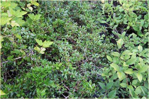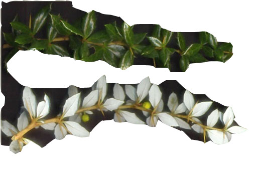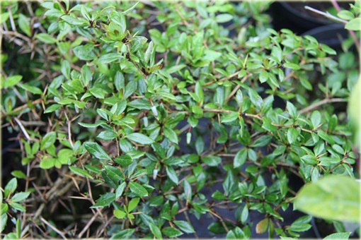 Liście ułożone na pędach skrętolegle. Są one skórzaste i sztywne. Górna strona blaszki liściowej jest ciemnozielona, błyszcząca, spodnia – szarosina.