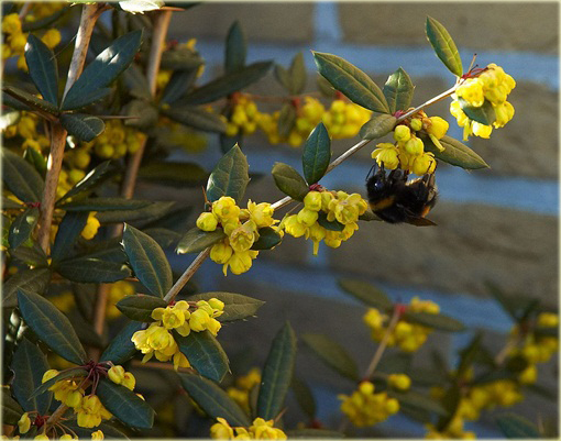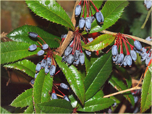 Zakwita na przełomie maja i czerwca. Kwiaty są obupłciowe, owadopylne, pachnące, drobne, żółte, z czerwonawą obwódką na zewnętrznej stronie płatków. Zwisają w pęczkach po 2-3 sztuki, zebrane po kilka – kilkunastu pęczków na krótkich szypułkach rozmieszczonych w gronach wzdłuż łukowato wygiętych gałązek. Każdy kwiat składa się z 6 płatków korony, 6 działek kielicha, 6 pręcików (które reagują na dotyk) i 1 słupka, dojrzewającego równocześnie z pręcikami (stąd jest również możliwość samozapylenia). U nasady płatków znajdują się nektarniki. Na przełomie sierpnia i września, po zapyleniu i zapłodnieniu kwiatów wykształcają się dekoracyjne owoce - jagody. Są one wydłużone, o długości do 8mm, ciemnogranatowe, pokryte sinawym nalotem woskowym, niezwykle atrakcyjne dla ptaków i pozostają na krzewach niekiedy nawet do wiosny.