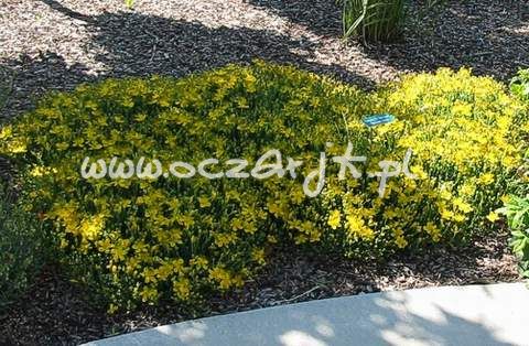 Ten nisko rosnący krzew ozdobny szybko się rozrasta, nie dopuszczając do rozwoju chwastów. Kwitnie kolorowo na żółto od lipca do września a nawet października, bardzo obficie. Może kwitnąć pod drzewami i na suchych skarpach, a jego duże jaskrawożółte kwiaty to bardzo ładny widok. Bardzo ciekawa roślina do ogrodów skalnych. Ładnie wygląda w zestawieniu z bylinami.