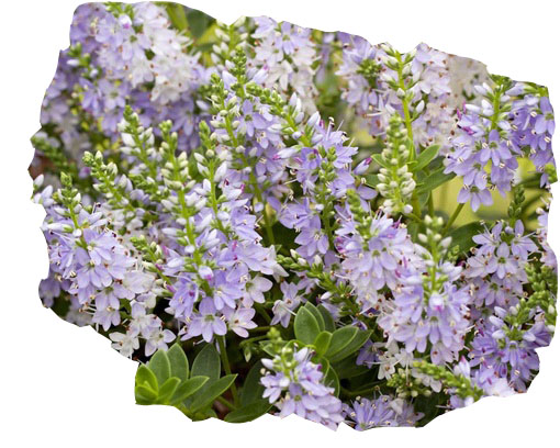 Hebe hybrid kwitnie dość obficie, od końca maja nawet do wczesnej jesieni. Kwiaty bladoliliowe, skupione w wiechowatych kwiatostanach..