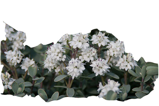 Hebe pinguifolia kwitnie dość obficie, od końca maja nawet do wczesnej jesieni. Kwiaty lejkowate, drobne, o subtelnej śnieżnobiałej barwie.