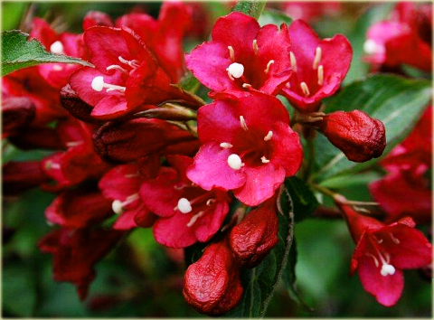 Weigela Eva Rathke to bardzo atrakcyjna odmiana krzewuszki, która zachwyca fenomenalnym wyglądem wyjątkowych, karminowo-czerwonych kwiatów. Lśniące, intensywnie czerwone dzwoneczki zebrane w gęste, liczne kwiatostany fantastycznie dekorują roślinę i urzekają śliczną formą. Piękny, słodki i subtelny zapach przyciąga z daleka i nie pozwala przejść obojętnie obok tego wyjątkowego krzewu.