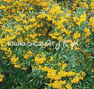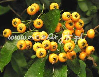 Szybko rosnący, wyprostowany krzew o ozdobnych owocach i ciernistych pędach. Dorosta do 1,5 m wysokości. Liście zimozielone, błyszczące, w surowe zimy zasychające. Kwiaty białe kwitną w maju. Owoce kuliste, rozmiaru grochu, jaskrawożółte, pozostające na krzewie do zimy. Owoce ognika 'Orange Glow' dojrzewają we wrześniu, są jednymi z nielicznych rodzajów ogników w kolorystyce jaskrawożółtej.