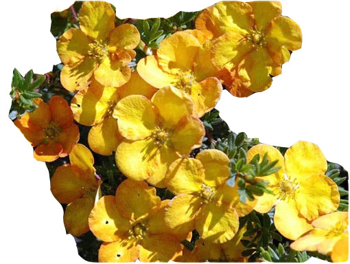 Pięciornik krzewiasty Annette Potentilla fruticosa Annette z rodziny Rosaceae jest bardzo gęstym, niskim krzewem ozdobnym o cienkich, pokładających się pędach Dorasta do 0,5 m wysokości i średnicy około 1 metra. Ma bardzo długi okres kwitnienia - od czerwca aż do października. Do tego jest niewymagający, toleruje wszystkie przepuszczalne, ogrodowe gleby i dobrze znosi okresy suszy. Wszystko to sprawia, że jest chętnie sadzony w ogrodach przydomowych. Na rozgałęzionych pędach kwiatowych aż do pierwszych przymrozków pojawiają się kwiaty złożone z pięciu płatków, średnicy około 3-4 cm, z żółtymi pręcikami i słupkami. Płatki są żółte z pomarańczowymi, nieregularnej szerokości brzegami, a także rozmytymi plamami tej samej barwy. Pięciornik krzewiasty Annette najlepiej rośnie w miejscach o pełnym nasłonecznieniu. Odmiana przydatna zarówno do ogrodów przydomowych, jak i zieleni osiedlowej. Można sadzić go w parkach i na pasach przyulicznych. Najlepiej wygląda posadzony w grupach złożonych z kilku roślin. Dobrze znosi cięcie. Można używać na niskie strzyżone lub niestrzyżone żywopłoty.