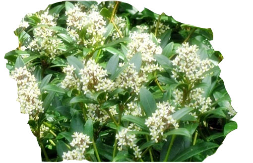 Skimia japońska to zimozielony krzew o bardzo regularnej kopiastej formie, dorastający do 1 metra wysokości. Jesienią zawiązuje zielonkawe pąki kwiatowe, które zimą stają się intensywnie purpurowe. Od marca do maja rozwijają się duże ilości, przyjemnie pachnących, białych kwiatów. Skimia japońska charakteryzuje się wspaniałym wyglądem przez cały rok. W październiku, kwiaty żeńskie przekształcają się w kuliste, intensywnie czerwone, dekoracyjne owoce. Owoce mogą utrzymywać się na krzewie całą zimę, nawet do marca i następnego kwitnienia.