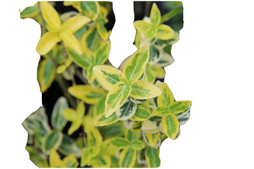 Trzmielina Fortunea Emerald Gold to gęsty i niski krzew okrywowy, pnący i rozrastający sią na boki dorastający do 50cm wysokości. Posiada ścielące się pędy, które mogą piąć się po podporach typu murki, kraty lub płoty ogrodowe, a nawet duże kamienie. Ma bardzo ciekawe nietypowe liście - zielone otoczone żółtym ozdobnym marginesem.