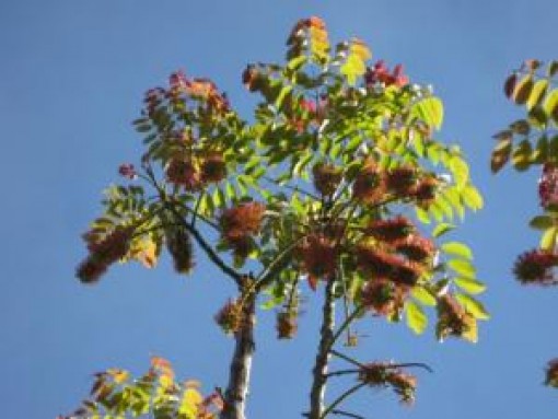 Inna, mniej znana nazwa rośliny to różowy cedr. To szybko rosnące, okazałe drzewo liściaste, potrafi osiągnąć wysokość od 30 do nawet 60 metrów. Posiada prosty pień, a jego okrągła korona składa się z wznoszących się gałęzi. Liście są dwupierścieniowe, około 30 cm z 3-4 złożonymi listkami i składające się z 5-6 eliptycznych, lancetowatych listków o długości 7-10 cm. Listki te są ułożone parami. Młode liście rośliny są jaskrawoczerwone, co nadaje drzewu charakterystyczny, egzotyczny wygląd. Drewno różowego cedru jest twarde i mocne. Ponieważ fizycznie przypomina drewno jesionowe i orzechowe, jest stosowane jako substytut tych dwóch gatunków. Kwiaty są szkarłatnoczerwone i ułożone w grona. Kwiaty pojawiają się na drzewie bez liści, do 20 gęstych główek zwisających z końców gałęzi, każda o długości 12 cm, ociekających nektarem z czerwono-zielonych do pomarańczowych kwiatów. Owoc jest wydłużonym i spłaszczonym strąkiem, jest wąsko uskrzydlony. Acrocarpus fraxinifolius ma bardzo głębokie korzenie. Sięgają one nawet do 4,5m. Drzewo jest dobrym źródłem nektaru i dobrą paszą dla pszczół i trzmieli. Gatunek ten ma symbiotyczny związek z niektórymi bakteriami glebowymi. Bakterie te tworzą na korzeniach brodawki i wiążą azot atmosferyczny. Część tego azotu jest wykorzystywana przez rosnącą roślinę, ale część może być również wykorzystywana przez inne rośliny rosnące w pobliżu. Trzeba przyznać, że drzewo to wyróżnia niespotykany, tropikalny wygląd.