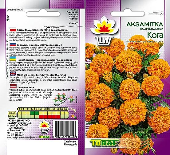 Roślina jednoroczna wysokości 25-35cm o pełnych kwiatach barwy pomarańczowej. Kwitnie obficie i równomiernie od czerwca do października. Doskonała na rabaty, obwódki, kwietniki, balkony.