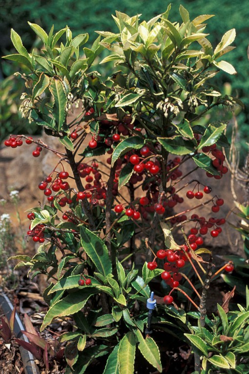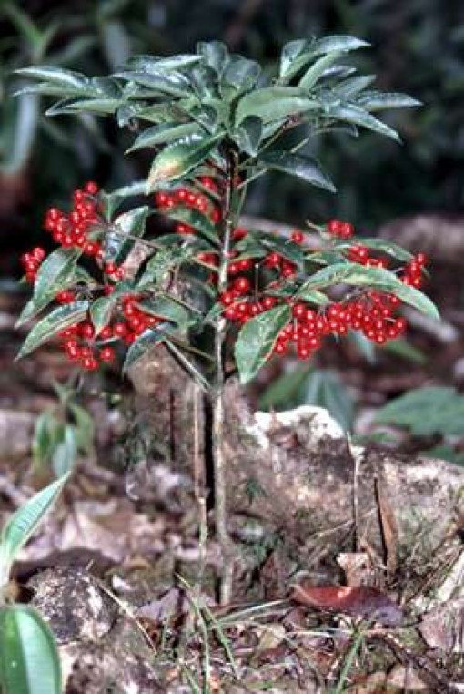 Ardisia Macrocarpa czasami też znana jako koralowiec himalajski to roślina leśna dorastająca do 1 m wysokości. Liście jej są gładkie, wąsko lancetowate, z kruchymi brzegami i zaokrąglonymi ząbkami. Jej różowe kwiaty wyrastają na krótkich szypułkach, w baldachach na końcach gałązek. Kwiaty są sztywne i lancetowate, jej płatki są spiczaste o długości 5 mm. Piękne owoce ardizji są jaskrawoczerwone, okrągłe, z zagłębieniem na czubku. Roślina ta występuje naturalnie w Himalajach, na wysokości 1500-2400 m n.p.m. Kwitnie od kwietnia do lipca.