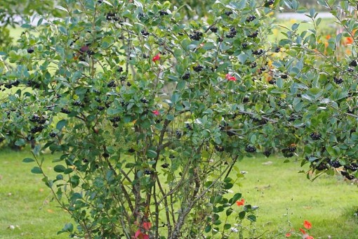 Aronia jest to okazały i długowieczny krzew owocowy, który dorasta do ok. 2-3 m. wysokości. Ma on wzniesiony pokrój i rozgałęzione pędy, które pokrywają dużye, jajowate, ciemnozielone, ząbkowane na brzegach liście. Liście te w okresie jesiennym przebarwiaja się na pomarańczowo i czerwono. U starszych egzemplarzy, pokrój tego krzewu staje się bardziej rozłożysty, ponieważ pędy przewieszają się na boki pod ciężarem soczystych owoców. Aronia kwitnie na wiosnę, w okresie maj-czerwiec. Wydaje ona w tym czasie drobne, białe, samopylne kwiaty, które zebrane są w pięciopłatkowe baldachogrona. We wrześniu, z zapylonych kwiatów rozwijają się soczyste, kuliste, czarne, mięsiste owoce, które pokryte są czarną, błyszczącą, niekiedy delikatnie owłosioną skórką. Owoce te zebrane są w wiszące baldachogrona. Długo utrzymują się one na pędach rośliny i nie przejrzewają zbyt szybko. Owoce aronii, początkowo mają cierpki smak, ale po lekkim przemrożeniu stają się smaczniejsze i bardziej słodkie. Aronia czarna jest krzewem bardzo wytrzymałym, mało wymagającym i bardzo łatwym w uprawie. Z tego względu wiele osób decyduje się na posadzenie tej rośliny. Preferuje ona stanowiska słoneczne i żyzne, próchnicze, lekko wilgotne i lekko kwaśne gleby, ale doskonale poradzi sobie także w niewielkim półcieniu i na słabym, przepuszczalnym, a nawet piaszczystym podłożu. Jest też w pełni mrozoodporna i nie wymaga zimowego okrycia, co znacznie ułatwia jej pielęgnację. Aronia rzadko pada również ofiarą szkodników i chorób, jest więc idealną propozycją, nawet dla początkujących sadowników. Aronię można rozmnażać z sadzonek zielnych,przez szczepienie oraz z nasion. Warto zaznaczyć, iż krzewy uzyskane z nasion rosną o wiele szybciej. Aronia czarna w ogrodzie może mieć bardzo wiele zastosowań. Najczęściej uprawiana jest ona jako krzew użytkowy, rodzący wartościowe owoce, nadające się na nalewki, przetwory, soki i do mrożenia. Może być ona też sadzona jako krzew ozdobny, który wiosną zachwyca wszystkich białymi kwiatami, a jesienią pięknymi, czerwono-pomarańczowymi, długo utrzymującymi się n pędach liśćmi. Krzewy można sadzić w ogrodzie jako soliter lub uprawiać w grupach. Nadaje się także do tworzenia luźnych, pięknie wyglądających, ozdobnych żywopłotów.