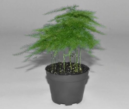 Asparagus pierzasty pochodzi z Południowej Afryki gatunek półkrzewu lub prymitywnego pnącza z rodziny szparagowatych, w naszym klimacie uprawiany jako roślina pokojowa. W naturze szparag może osiągać znaczne rozmiary, dorastając nawet do 2-3 metrów wys., jednak w uprawiane doniczkowej rzadko przekracza wysokość 50-70 cm. Szparag pierzasty, mylnie nazywany "paprotką", ma parasolowaty pokrój i piękne, ażurowe, igiełkowate, soczysto zielone "liście", które w górnej części łodygi mocno się rozgałęziają i rozkładają horyzontalnie na boki. W rzeczywistości są to ulistnione pędy szparaga – inaczej mówiąc to pełniące funkcję liści gałęziaki, powstałe ze zmodyfikowanej łodygi.