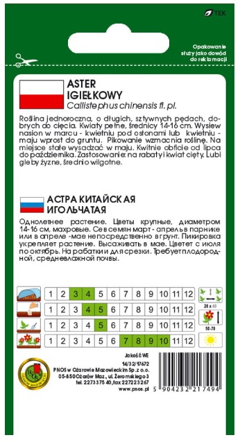 Aster igiełkowy Ewa ma sztywne, proste pędy zakończone pełnymi kwiatami z płatkami skręconymi w długie igły. Doskonale nadaje się na kwiat cięty. Lubi gleby żyzne, średnio wilgotne.