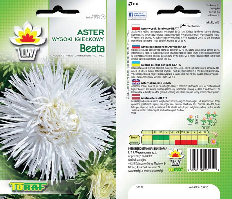 Atrakcyjna roślina jednoroczna wysokości 50-75cm. Kwiaty koloru białego. Doskonała na kwiat cięty i wyższe rabaty.