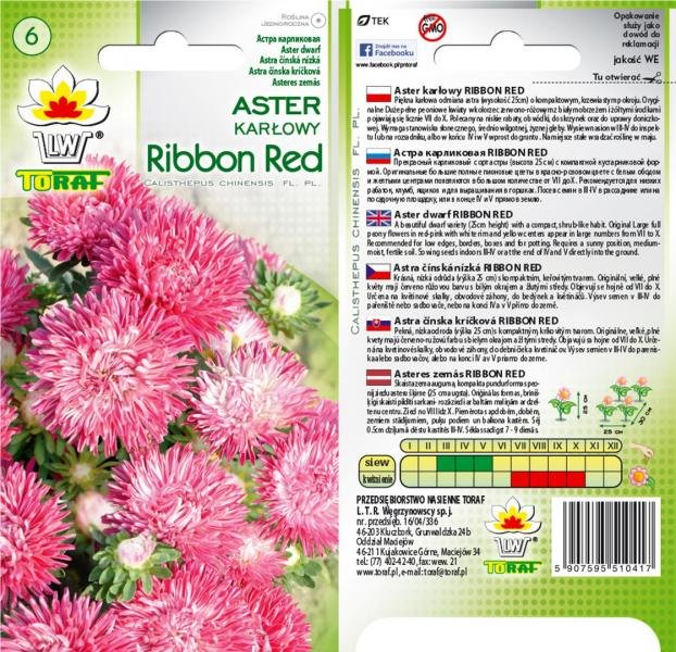 Piękna karłowa odmiana astra (wysokość 25cm) o kompaktowym, krzewiastym pokroju. Oryginalne duże pełne peoniowe kwiaty w kolorze czerwono-różowym z białym obrzeżem i żółtymi środkami pojawiają się licznie VII do X. Polecany na niskie rabaty, obwódki, do skrzynek oraz do uprawy doniczkowej.