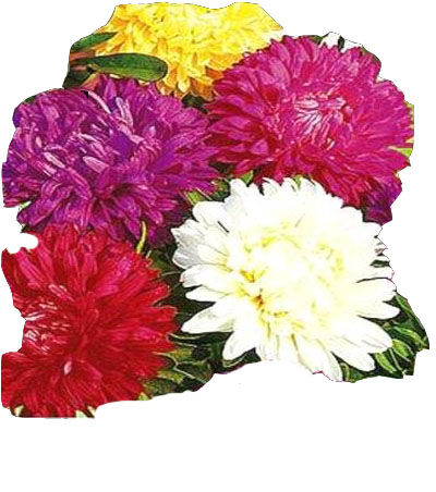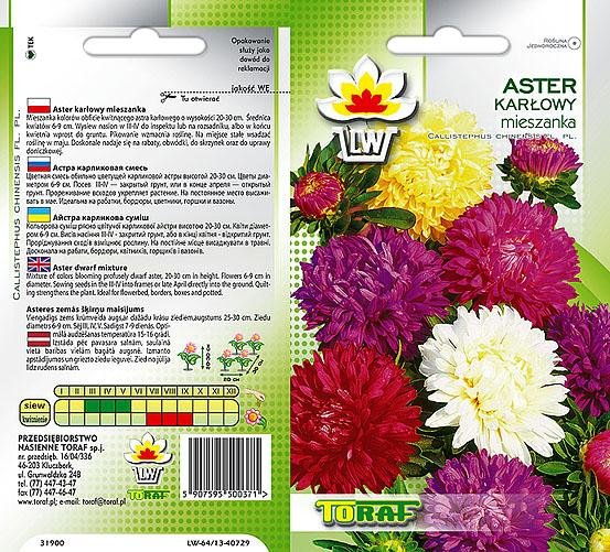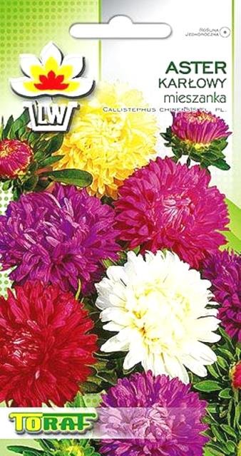 Mieszanka kolorów obficie kwitnącego astra karłowego o wysokości 20-30 cm. Średnica kwiatów 6-9 cm. Wysiew nasion w III-IV do inspektu lub na rozsadniku, albo w końcu kwietnia wprost do gruntu.