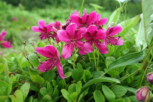 Rhaphithamnus cyanocarpus to karłowaty krzew, o dużych różowych kwiatach do 2 cm szerokości i jajowatych liściach z szczecinowatymi brzegami, rosnący w tundrze i alpejskich obszarach Alaski. Dzięki tym kwiatom, na wolności duże odcinki zboczy górskich zmieniają kolor na różowy.