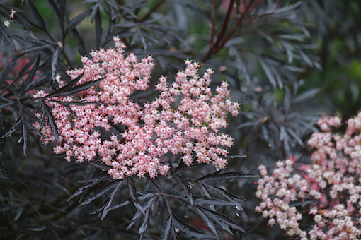Jest to bardzo duży krzew, dorasta nawet do do 6 m wysokości i ma tyleż samo metrów szerokości. Ozdoba rośliny: Białe lub kremowe, bardzo drobne kwiaty zebrane w okazałe, płaskie baldachy. Kwiaty wydzielają charakterystyczny, silny zapach, który może wydawać się słodko mdły. Po przekwitnięciu powstają czarnofioletowe owoce zebrane w zwisające owocostany. Liście ciemnozielone, eliptyczne.