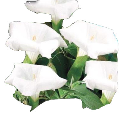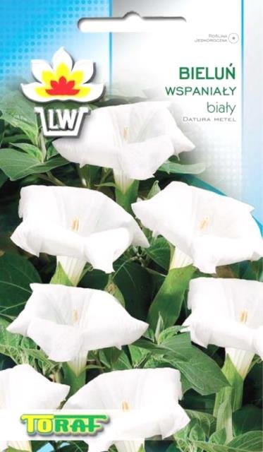 Roślina jednoroczna osiągająca wysokość 70 cm, o okazałych, trąbkach, białych kwiatach osadzonych na wzniesionych, rozgałęzionych łodygach tworzących kopułę zielonych liści.