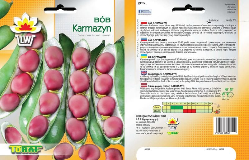 Odmiana średnio wczesna, (okres weg. 80-90 dni), bardzo plenna o równomiernie dojrzewających strąkach średniej długości zawierających 3-5 dużych nasion barwy karminowo-czerwonej.