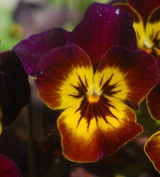 Bratek brązowy z plamką Viola wittrockiana Gams to dwuletnia roślina, o dużych dwubarwnych, oryginalnych kwiatach, których żółta plama z czarnymi kreskami otoczona jest kilkumilimetrową mahoniową obwódką. Wysiew nasion w czerwcu-sierpniu pod osłonami lub na rozsadniku. W temp. 15-20°C wschody następują po 2-3 tygodniach. Wysadzać jesienią lub wiosną, w odległości 20-25 cm, w żyzną glebę, w miejscu słonecznym lub nieco ocienionym. Kwitnie od wczesnej wiosny do późnej jesieni. Uprawiać na rabatach, kwietnikach, w pojemnikach, głównie do dekoracji wiosennej i w pierwszej połowie lata.