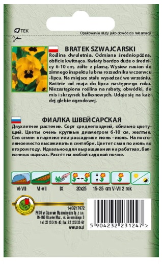 Bratek szwajcarski Firnengold - nasiona kwiatów