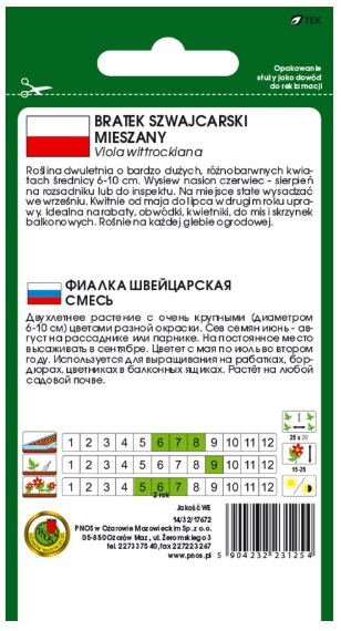 Bratek szwajcarski Lord Beaconsfield Fioletowo-biały to niezastąpiona roślina na rabaty, obwódki, do mis i skrzynek balkonowych. Udaje się na każdej glebie ogrodowej. Roślina dwuletnia. Odmiana średnio późna. Kwiaty o średnicy 6-10 cm, fioletowo- białe. Wysiew nasion do zimnego inspektu lub na rozsadniku w czerwcu-lipcu. Na miejsce stałe wysadzać we wrześniu. Kwitnie od maja do lipca następnego roku.