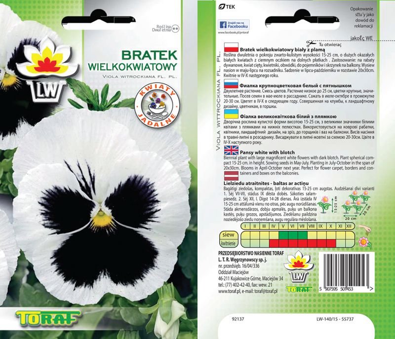 Roślina dwuletnia o pokroju zwarto-kulistym wysokości 15-25 cm, o dużych okazałych białych kwiatach z ciemnym oczkiem na dolnych płatkach. Zastosowanie: na rabaty dywanowe, kwiat cięty, kwietniki, obwódki, do pojemników i skrzynek balkonowych.