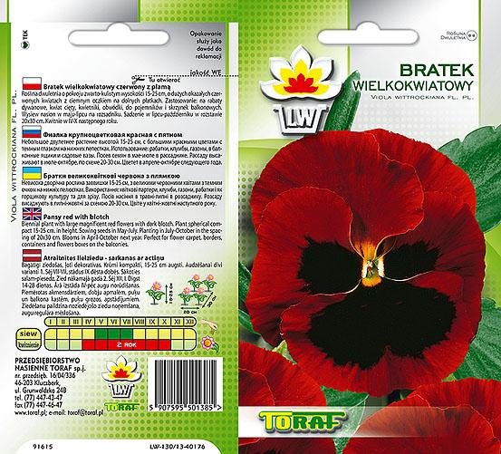 Roślina dwuletnia o pokroju zwarto-kulistym wysokości 15-25 cm, o dużych okazałych czarnych kwiatach. Zastosowanie: na rabaty dywanowe, kwiat cięty, kwietniki, obwódki, do pojemników i skrzynek na balkony.