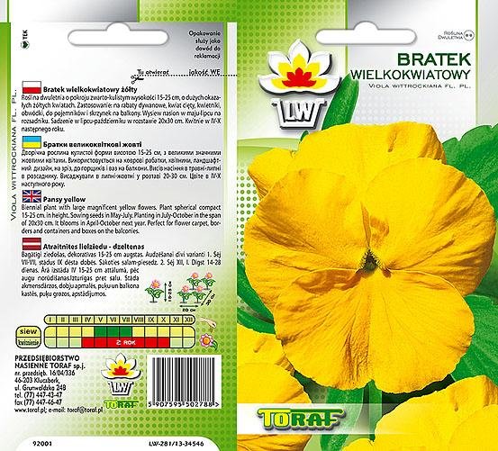 Roślina dwuletnia o pokroju zwarto-kulistym wysokości 15-25 cm, o dużych okazałych kwiatach koloru niebieskiego z plamą na dolnych płatkach. Zastosowanie: na rabaty dywanowe, kwiat cięty, kwietniki, obwódki, do pojemników i skrzynek na balkony.