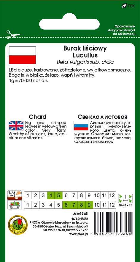 Termin wysadzania: 1 dekada III (rozsada) 3 dekada IV (wysiew)