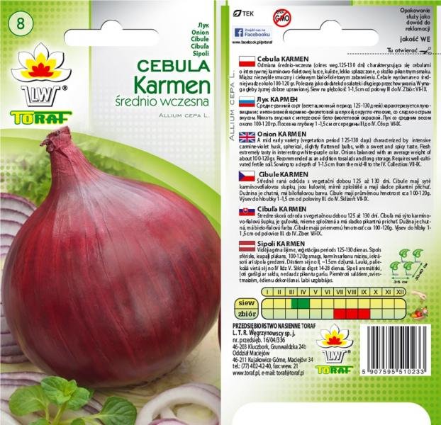 Odmiana średnio-wczesna (okres weg.125-130 dni) charakteryzująca się cebulami o intensywnej karminowo-fioletowej łusce, kuliste, lekko spłaszczone, o słodko pikantnym smaku.