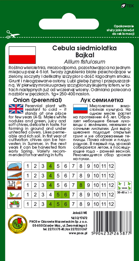 Cebula siedmiolatka Bajkal to warzywo wieloletnie. Uprawia się ją głównie dla grubego szczypioru. Cebule ma niewielkie – nadają się np. na włoszczyznę do zup. Cebula siedmiolatka plonuje od wczesnej wiosny do jesieni.
