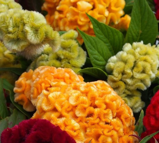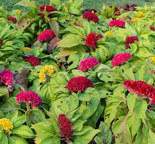 Celozja grzebieniasta grzebionatka Celosia argentea to roślina o dużych, owalnych liściach tworzących rozetę. Kwiaty bardzo drobne, zebrane w okazałe kwiatostany kształtem przypominające koguci grzebień w odcieniach żółtego, pomarańczowego, różowego i czerwonego. Celozja grzebieniasta jest rośliną jednoroczną z rodziny szarłatowatych Amaranthaceae. Grzebionatka będzie wyglądała bardzo wdzięcznie na rabacie, kwietniku lub w pojemniku, wystawionym na zewnętrzny parapet czy balkon. Jej kwiaty świetnie nadają się do suszenia, ponieważ bardzo długo zachowują intensywne kolory.