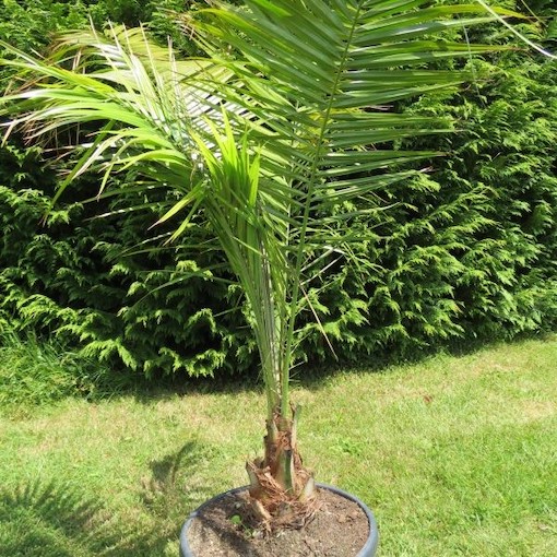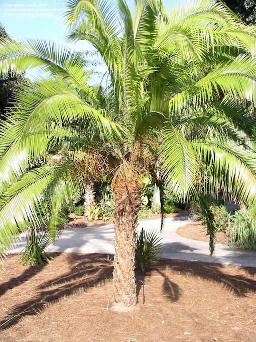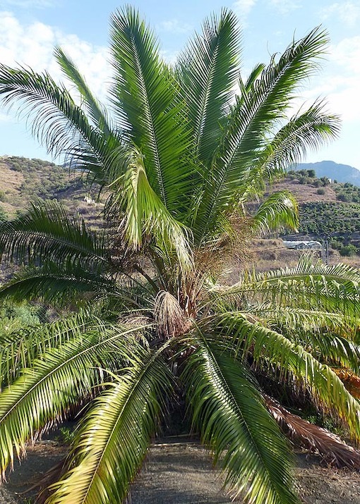 Ten niezwykły gatunek z podnóża Himalajów ma niewiele wspólnego ze swoimi krewnymi z bardziej suchych stref klimatycznych. Dzięki swoim długim, elegancko łukowatym, lśniącym zielonym liściom i gładkiemu smukłemu pniu dorastającym do około 14 m wysokości, faktycznie przypomina palmę kokosową.