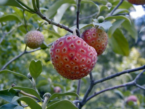 Najciekawszym elementem tej rośliny są jednak owoce, zielone, okrągłe, przypominające maliny pestkowce, które dojrzewając przebarwiają się na czerwono. Są duże i okrągłe i wspaniale prezentują się na tle zielonych liści. Gatunek ten najlepiej jednak uprawiać w cieplejszych rejonach naszego kraju aby nie przemarzł zimą. Dziko rosnący dereń jest czasem spotykany w lasach i zaroślach, choć coraz rzadziej można na niego trafić. Różne odmiany derenia doskonale sprawdzają się w ogrodach. Odpowiednio przycinane mogą służyć za żywopłot. Dereń, w zależności od warunków klimatycznych w jakich rośnie może przybierać formę drzewa lub krzewu. W łagodniejszych warunkach, czyli w miejscach skąd pochodzi, tj. w Azji Południowo-Wschodniej (Chiny, obszar Himalajów), a obecnie w obszarze Śródziemnomorskim (Włochy) przybiera formę niskiego drzewka. U nas, a także w innych północnych rejonach Europy, gdzie jest sadzony jako roślina ozdobna, jest wiecznie zielonym bądź wpół wiecznie zielonym krzewem. Może on dorastać nawet do 12 m wysokości.