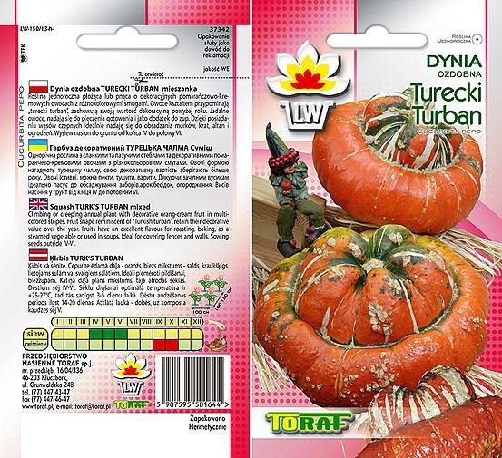 Roślina jednoroczna płożąca lub pnąca o dekoracyjnych pomarańczowo-kremowych owocach z różnokolorowymi smugami. Owoce kształtem przypominają „turecki turban”, zachowują swoją wartość dekoracyjną powyżej roku.