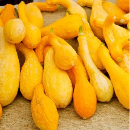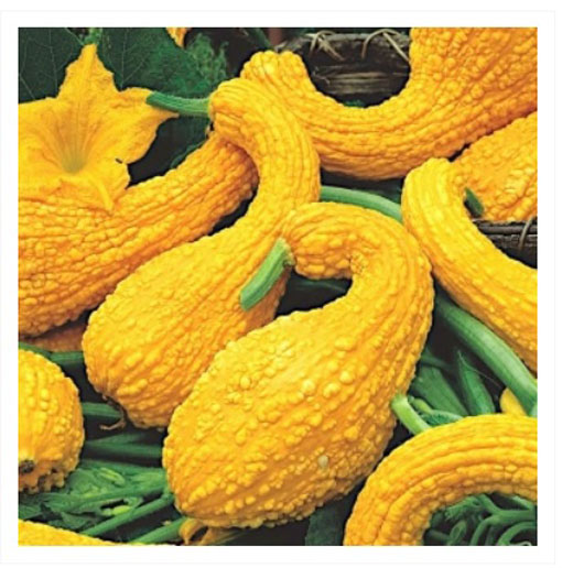 Dynia ozdobna Yellow Crookneck Cucurbita to jednoroczna roślina o pędach pnących lub płożących się. Późnym latem i jesienią pojawiają się liczne złotożółte owoce kształtu butelkowatego z wydłużoną zagiętą „szyjką”. Wypustki na skórce oraz kawałek ogonka pozostawiony podczas zrywania owoców upodobniają się do małych kaczuszek. Owoce zbiera się jesienią przed przymrozkami, gdyż zachowują wtedy wartość dekoracyjną do późnej wiosny stanowiąc atrakcyjny element zdobniczy pomieszczeń mieszkalnych lub biurowych. W czasie wegetacji z powodzeniem wykorzystuje się roślinę do obsadzania altan, parkanów lub używa jako rośliny okrywowej. Wysiewem nasion bezpośrednio do gruntu należy zająć się na początku maja. Uprawę dyni Yellow Crookneck najlepiej przeprowadzić na w pełni nasłonecznionym stanowisku oraz próchniczej i szybko nagrzewającej się glebie. Wymaga stałego dostępu do wody.