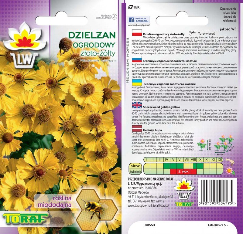 Miododajna bylina chętnie odwiedzana przez pszczoły i motyle. Rośliny w pełni odporna na mróz osiąga wysokość 60-70 cm. Tworzy rozgałęzione łodygi z licznymi kwiatami śr. 6cm. w kolorze złotożółtym z brązowym środkiem.