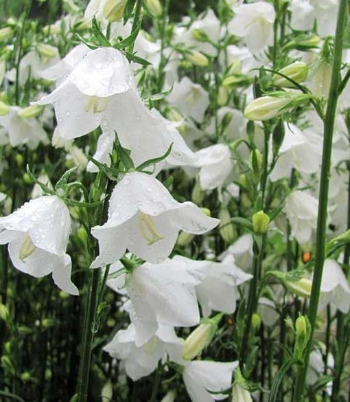 Dzwonek brzoskwiniol biały Campanula persicifolia alba to bylina należąca do rodziny dzwonkowatych (Campanulaceae). Roślina dorasta do 80 cm wysokości. Wytwarza nagie lub omszone, najczęściej pojedyncze łodygi i lancetowate, sztywne liście. Od czerwca do sierpnia kwitnie wytwarzając atrakcyjne grona z kilkoma dzwonkowatymi kwiatami barwy białej, niebieskiej lub fioletowej. Owocem dzwonka jest torebka.