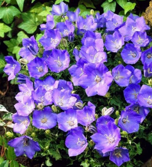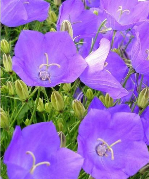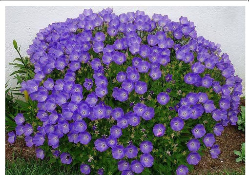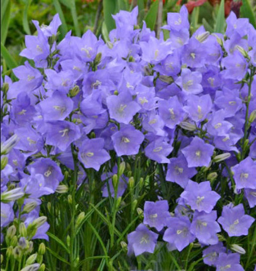 Dzwonek brzoskwiniol blau Campanula persicifolia blau jest wieloletnią byliną ze sztywnymi prostymi łodygami zakończonymi białymi kwiatami zebranymi w grono. Dzwonek brzoskwiniolistny dziko rośnie w Zachodniej Europie, w europejskiej części Rosji, w zachodniej części Syberii. W Polsce można go spotkać na niżu i w Karpatach. Uprawiany jest od 1545 roku. Łodygi dorastają do 50-100 cm wysokości i zakończone są białymi kwiatami z szeroką, dzwonkowatą, pięciopłatkową koroną o szerokości i długości około 3-5 cm. Kwiaty zebrane sa w luźne grona w kształcie miotełki na wierzchołkach pędow. Dzwonek brzoskwiniolistny posiada dwa rodzaje liści – przyziemne i łodygowe. Przyziemne są podłużne, lancetowate, a łodygowe - wąsko lancetowate, siedzące, sztywne i błyszczące. Liście są gładkie, ząbkowane. Lubi otwarte słoneczne stanowiska i żyzną gliniastą glebę. Dzwonek brzoskwinilistny jako roślina ozdobna często uprawiana w ogrodach. Najczęściej stosuje się go na rabaty i do nasadzeń grupowych. Dobrze prezentuje się w ogrodach wrzosowiskowych. Nadaje się także do wysadzania miedzy krzewami. Wykorzystywany jest także jako kwiat cięty.