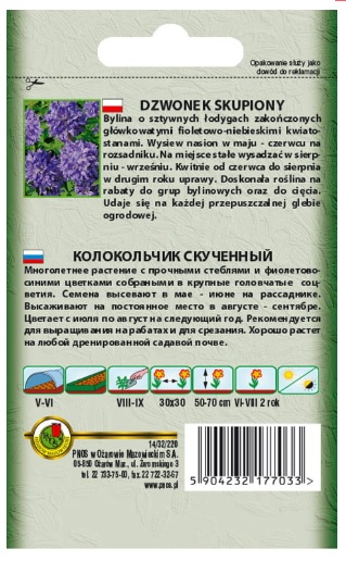 Dzwonek skupiony charakteryzuje się bardzo długim i obfitym kwitnieniem. Jest to dzwonek o intensywnie fioletowo-niebieskich kwiatach wyrastających niziutko ponad kępy lancetowatych liści. Kwitnienie trwa zwykle od czerwca do sierpnia. Roślina jest bardzo odporna na niesprzyjające warunki. Poradzi sobie na praktycznie prawie każdej ziemi ogrodowej.